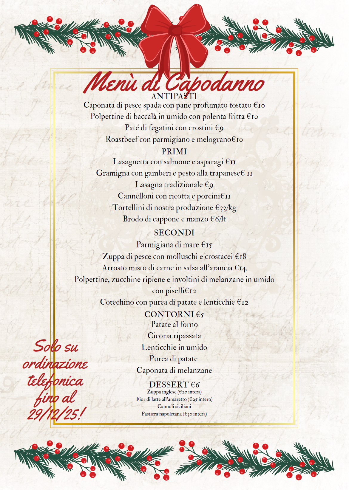 Dai primi piatti ricchi e saporiti ai secondi gustosi e ben bilanciati, dai contorni sfiziosi ai dolci irresistibili, ogni nostra preparazione nasce dall’amore per la buona cucina e dal desiderio di portare in tavola sapori autentici. Potrai trovare piatti realizzati con verdure di stagione, sughi preparati con ingredienti selezionati e accostamenti che esaltano il gusto delle materie prime nel pieno del loro periodo migliore.